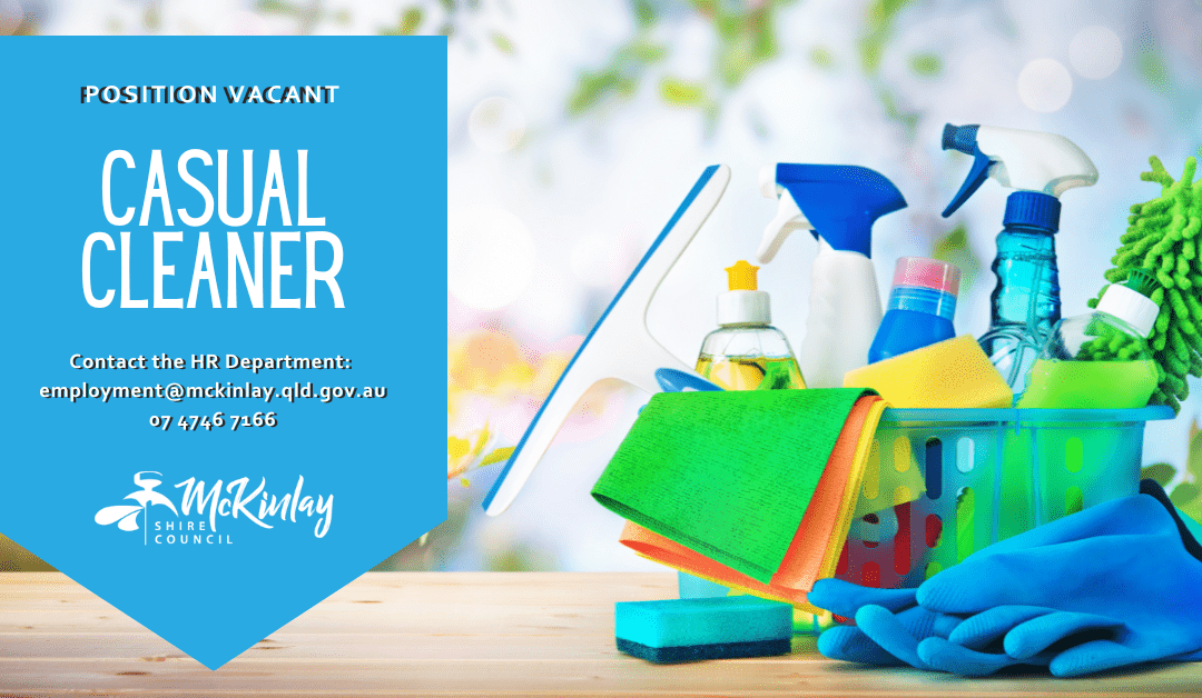 McKinlay Shire Council is seeking to employ a cleaner to be primarily based at our award-winning Julia Creek Caravan Park for the upcoming season from March through until September. The hours worked will be varied with flexibility and may also involve other various cleaning duties at Council buildings and offices for the right applicant.
